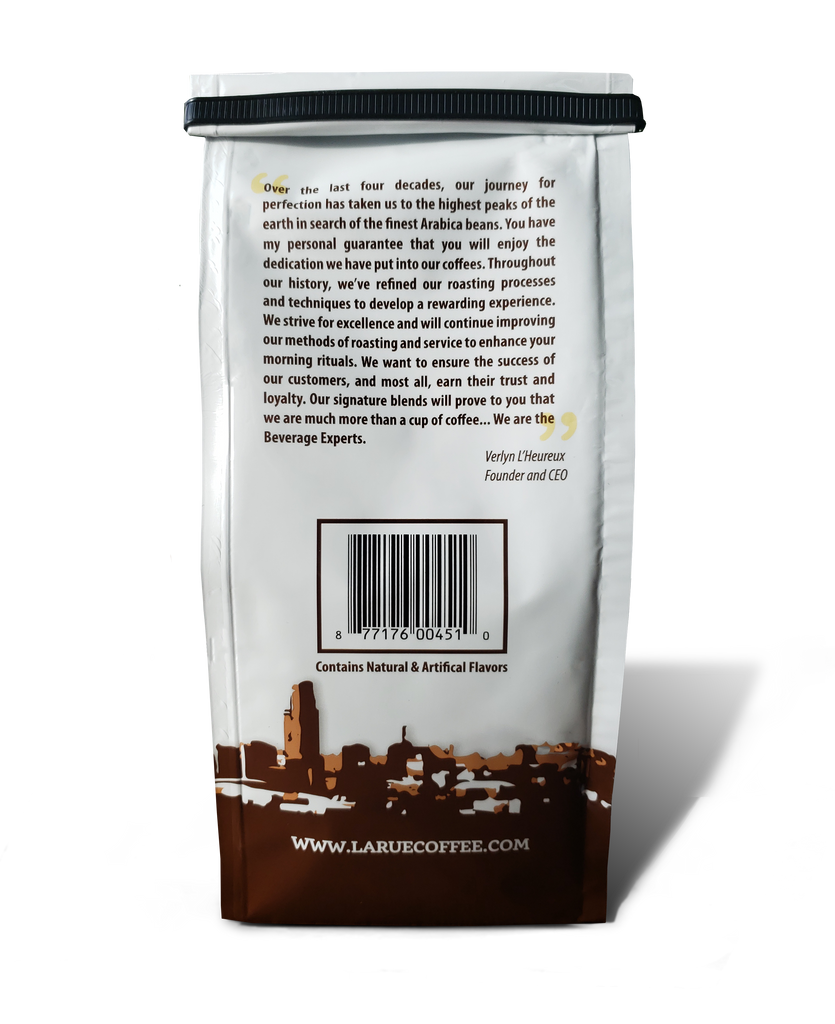 A bold blend of light and dark South American beans with the rich nutty flavor of Sumatra Mandheling.